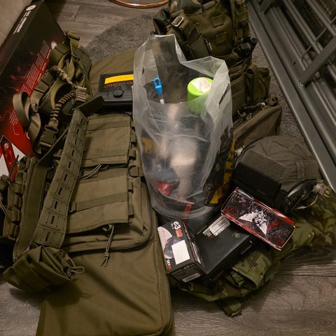Medföljer väst med 3 stora magasinfickor och 6 små magasinfickor, skyddsmask och skyddsglasögon.