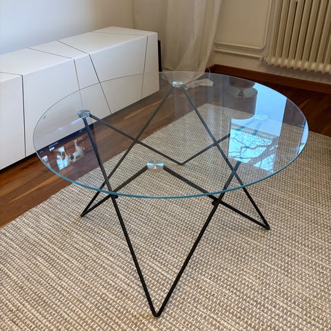 Säljer ett runt marmorliknande soffbord i nyskick.