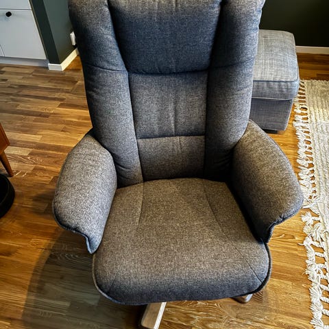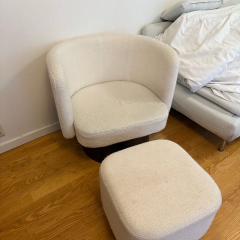 Säljer nu vår fina fåtölj Cordelia med tillhörande fotpall från Mio. Den köptes mars 2024 med nypris 8000 sek.