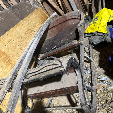 Släpskrapa för markberedning med metallkonstruktion och hjul för enkel förflyttning. Utrustad med dragstång för anslutning till fordon eller traktor. Används för att jämna ut och förbereda markytor, exempelvis ridbanor eller trädgårdsytor.