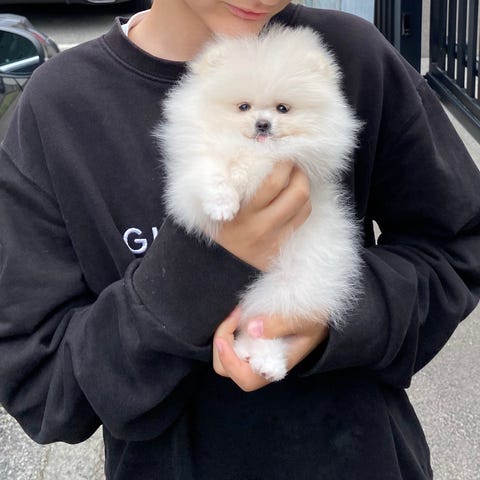 Hon är en blandras 50% malteser 25% pomeranian och 25% tyskterrier