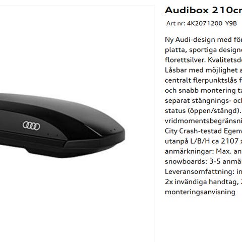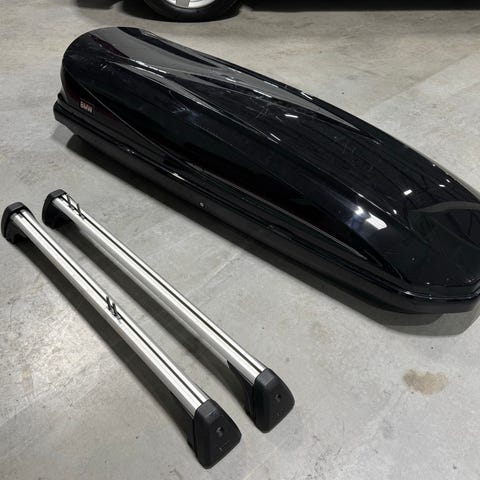 Hyundai takbox 330 för montering på takräcken. Utrustad med lås för säker förvaring. Passar för transport av extra bagage och utrustning vid resor. Perfekt till sportlovet! Aldrig använd, i original förpackning.