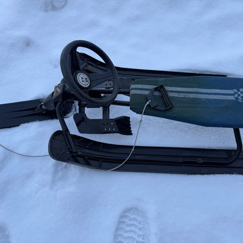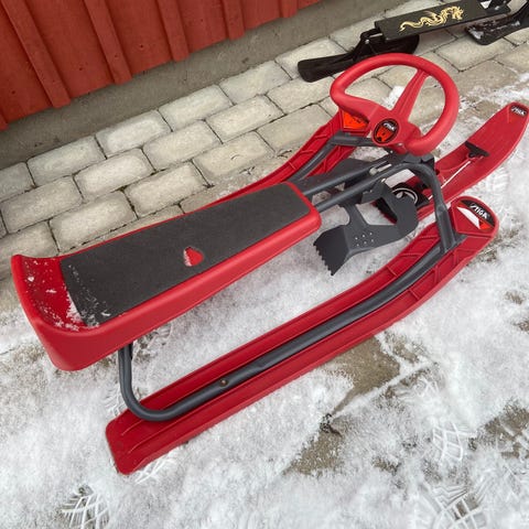 En lite spark som är Svensktillverkad. Snowracen finns lite rost på men fullt fungerande. Kälke är i fint skick.