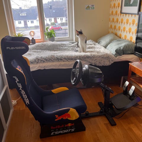 Säljer min Next Level Racing GT Lite racingsimulator. En stabil och bekväm cockpit som är perfekt för ratt och pedaler. Smidig att använda hemma då den är hopfällbar och enkel att förvara när den inte används.