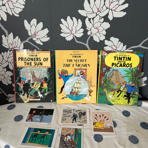 Figurer från Tintin. Inkluderar Dupont och Dupond, Professor Kalkyl och Milou med ben