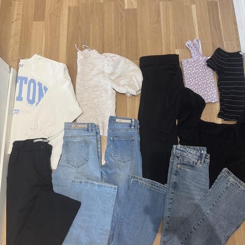 Vissa av plaggen är oanvända, men tvättade.