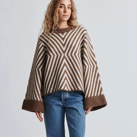 Stickad, V-ringad tröja med lös passform / 100% kaschmir NY