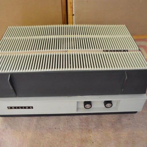 Philips FT330 skivspelare med automatisk retur och synkronstyrning. Skivspelaren har en rund, svart spelmatta och en silverfärgad bas. Utrustad med kontroller för hastighetsval och tonarmslyft.