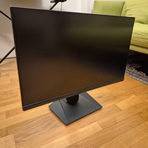 LG 27-tums datorskärm med 180hz. Skärmen är utformad för gaming och har en svart färg med detaljer i rött.