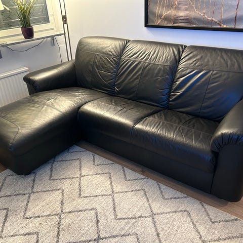 Säljer bekväm IKEA Grönlid soffa med schäslong, inklusive tillhörande fotpall