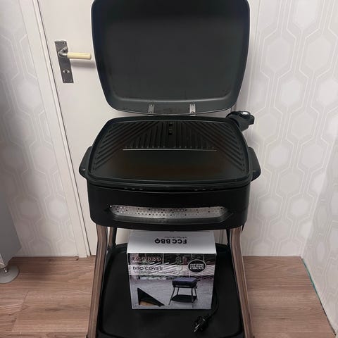 Elektrisk grill i så nära nyskick man kan komma. Smidigt och bra om du bor i lägenhet eller av annan anledning ej kan eller vill använda kol eller gas.