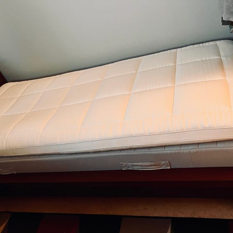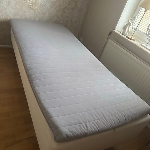 IKEA säng, mått 90x200 cm. Nypris 2595 SEK, säljer för 500. Madrass ingår i priset. Skriv gärna ifall du undrar något mer.