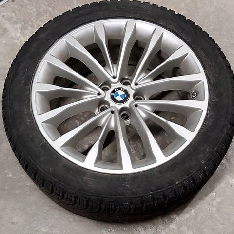 En uppsättning vinterhjul som suttit på en BMW 5 serie