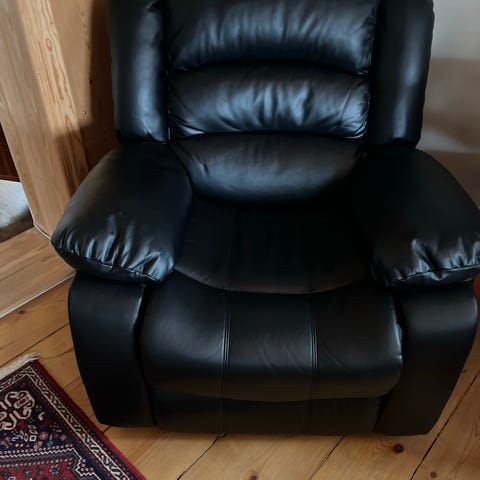 Soffgrupp Modena med en 2:a i svart läder köpt i butiken Masku i Järfälla 2013. Väldigt skön och bekväm att sitta på.