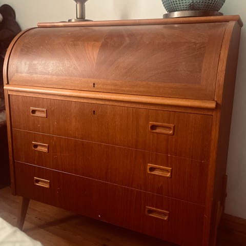 Teak byrå i fint skick. Hämtas i Västertorp eller levereras för 500 kr