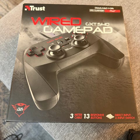 Det här e en wired gxt 540 gamepad. Den är helt ny inte använd en gång har försökt testa till min ps5 men gick inte.och den här funkar bara till pc/ps3.det finns 2 stycken om ni vills köpa...