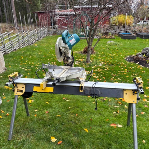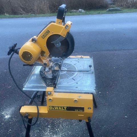 . Verktyget är avsett för sågning och kapning med möjlighet till geringsvinklar. Robust konstruktion med handtag för enkel hantering.