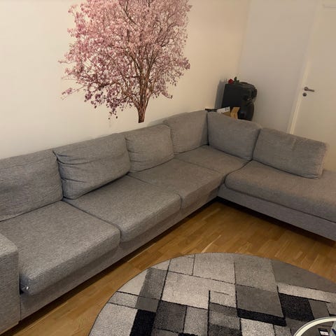 Säljer en stilren och mycket bekväm Mio Nevada divansoffa i ljusgrått tyg. Soffan är i väldigt fint skick och har använts varsamt. En modern och rymlig modell som passar perfekt både i vardagsrum och större öppna ytor.