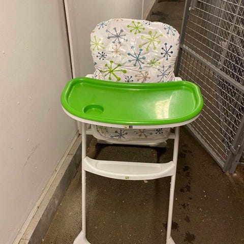 Stokke Matstol för barn i grön färg. Tillverkad i plastmaterial. Designad för barn och används som matstol.