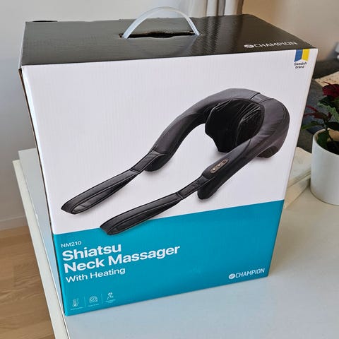 Endast använd två ggr då jag tycker den är lite väl hårdhänt för mina ömma muskler. Skönt med värmeeffekt i händerna och att du kan spänna fast den om du sitter/står.