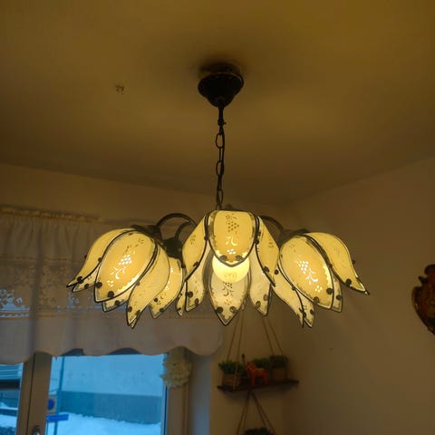 -Höjd: justerbar upp till ca 100cm.-1st.ljuspunkt till E27 glödlampa MAX 100-Vikt:ca 1.90kg.-Bruksanmärkningar repor, skav, epoxi lim på takkupa, i fint skick i övrigt, hiss funktion fungerar väl omhändertagen lampan