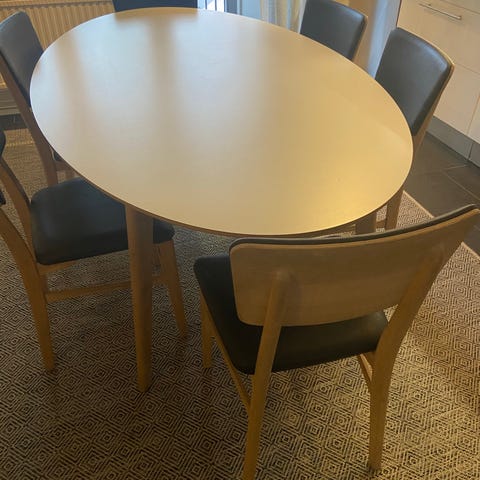 Bord i bra skick med undantag för en gammal brännskada som täcks väl med en lite matduk.