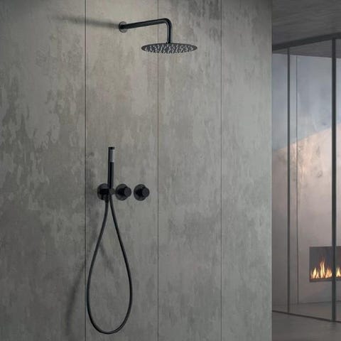 Gustavsberg Estetic duschsystem med termostat i krom. Systemet inkluderar en takdusch med en diameter på 130 mm, en handdusch med slang och en termostatblandare. Duschsystemet är avsett för väggmontering och har en total höjd på 1750 mm. Dimensioner och anslutningar är anpassade för standardinstallation med G1/2 anslutning.