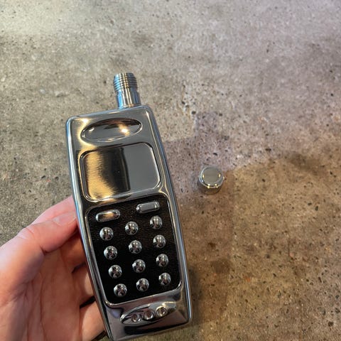Vintage fickplunta från 40-talet. Hel och fin och med fint läderfodral. Rymd ca 3 dl