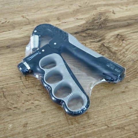 Grå med svarta detaljer. Nyköpt med knappt använt. Därför vill vi sälja.