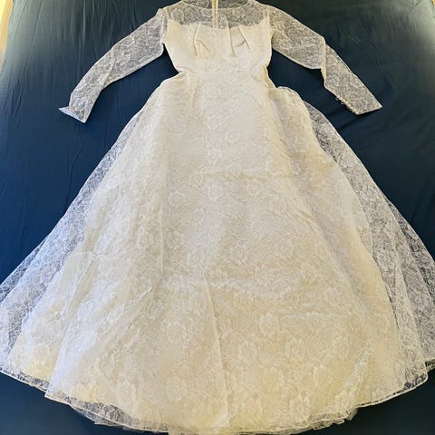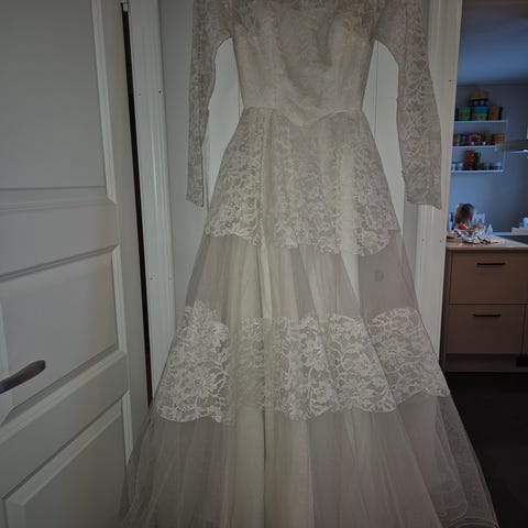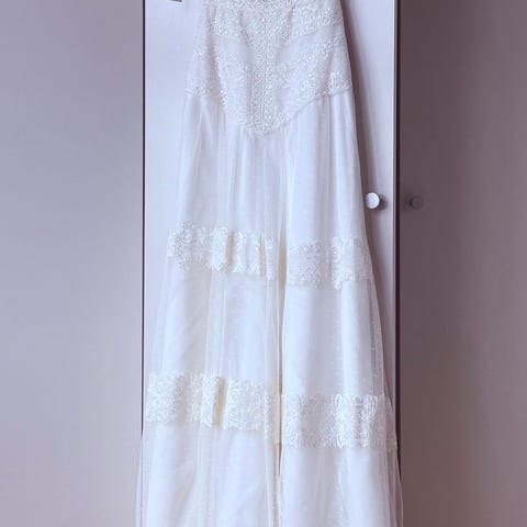 Enkel och elegant brudklänning. Mindre fläckar kan förekomma se bild. Finns att testa utanför Malmö. Klänningen är köpt som del av ett större parti, finns ej några bilder där modell bär klänningen.