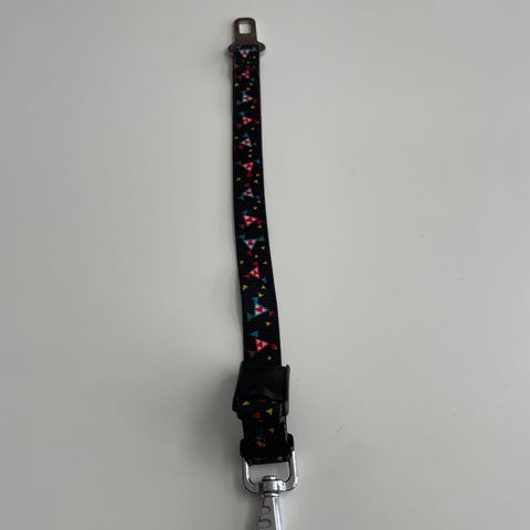 Hundhalsband med stjärnmönster i storlek S, anpassat för hundar mellan 4,5 och 8 kg. Halsbandet är svart med vita stjärnor och har justerbar längd för att passa mindre hundar. Mått runt halsen 28-41 cm.