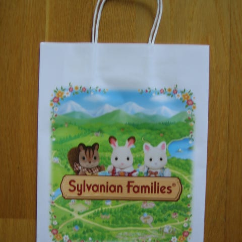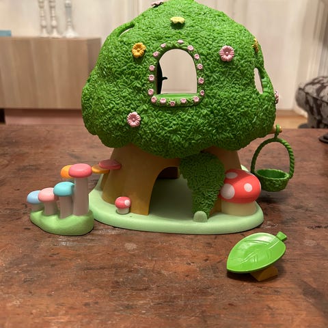 Sylvanian Families Villa. Säljs inklusive inredning och figurer på bilderna, däribland öppningsbart kylskåp med matvaror i. Finns taklampa som går att tända i två rum i huset.