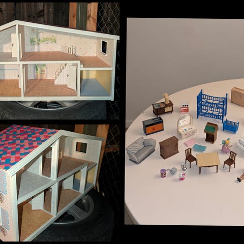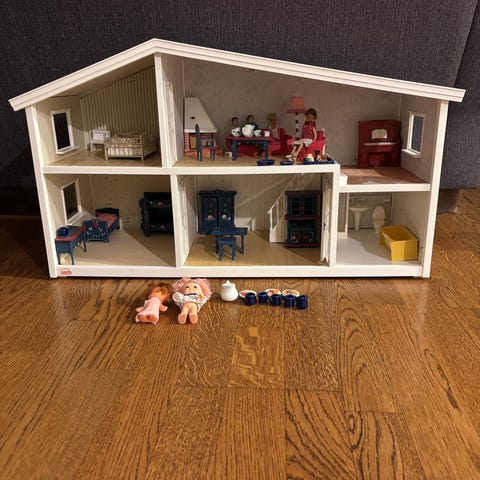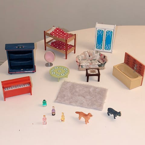 Ett set med äldre Lundby Rokoko möbler i relativt gott skick.