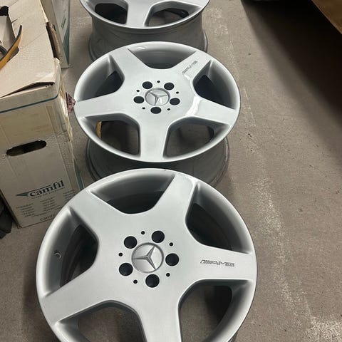 Komplett med 4 centrumkåpor och AMG dekaler.