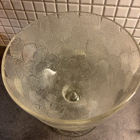 Iittala skål tillverkad i glas. Skålen har en rund form med ett mönster av små prickar runt om. Kan användas för servering eller förvaring i köket. 20 cm i diameter