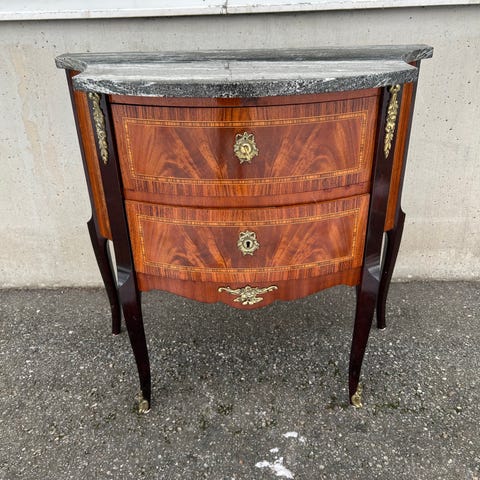 Stor fin retro gustaviansk byrå med 3 lådor i mahogny & intarsia skiva i marmor