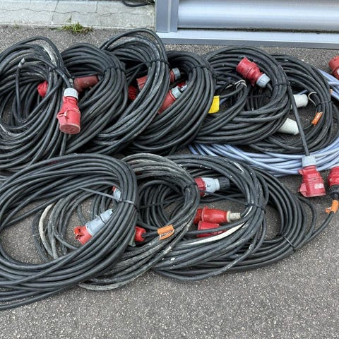 25–30 m lång förlängningssladd med tre uttag. 16A