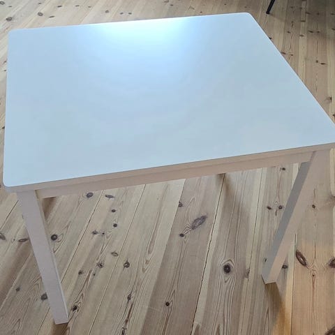 IKEA barnbord i vitt. Passar för olika aktiviteter som lek och pyssel. Finns några mindre märken på bordet. Vore fint om det kunde gå vidare till ett nytt hem.