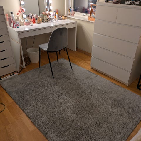 Grå ryamatta använd men i gott skick. Skulle behöva tvättas innan användning.