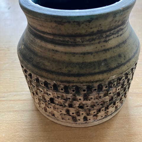 Rustik och trevlig brun kruka. Retro - troligtivs 60-70-tal. Ingen märkning. Mycket fint skick - inga skador.