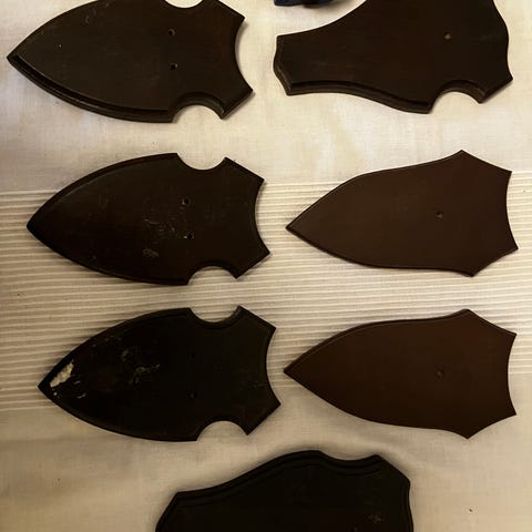 Säljer 7st jakttrofésköldar i fint skick. Det har varit rådjurskranier monterade på men som tagits bort. Borrhål finns så de kan monteras och hängas upp.