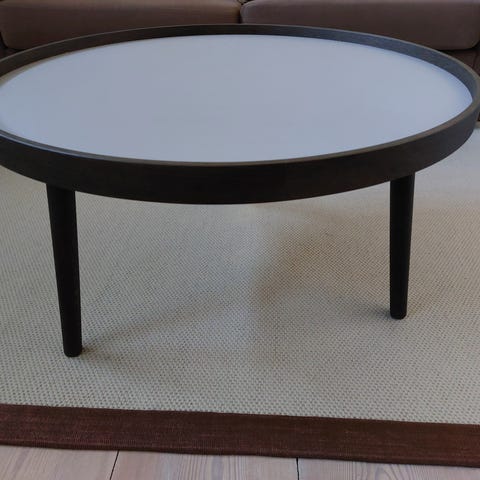 Runt soffbord med svart marmormönstrad yta. Väldigt bra skick!