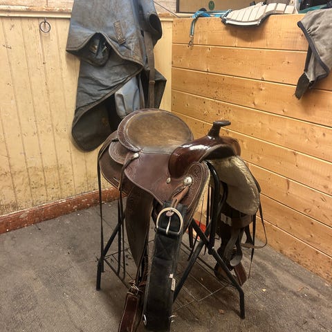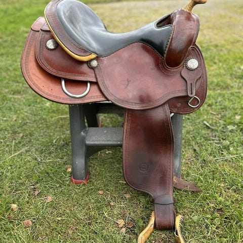 Reiningsadel från Bob's custom saddles av modellen Randy Paul (samma trä och säte som Avila). 16" säte.