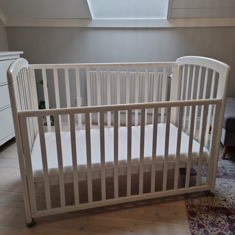 Säljer vår fina spjälsäng ifrån Troll (modell Lukas) samt madrass (modell Carpathia) och madrasskydd från Babymatex. Sparsamt använda och i mycket fint skick, frånsett lite bortskavd färg på spjälsängen. Allt är inköpt nytt av oss.