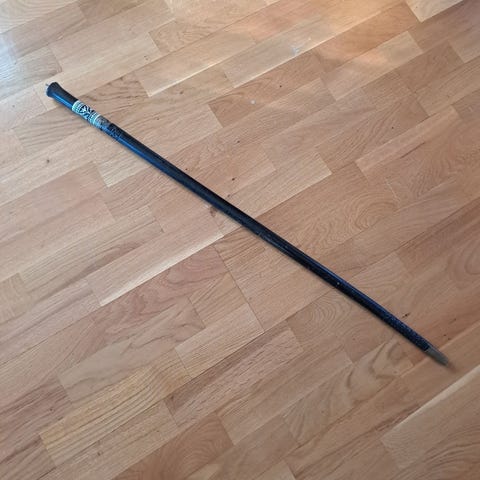 Jag säljer min gamla svärdskäpp, ett riktigt charmigt samlarobjekt från sekelskiftet 1900. Den har en mörk hornknopp med fina metallringar och en dold stålblad som kan dras ut. Den känns gedigen i handen och har den där härliga patinan som bara kommer med ålder.