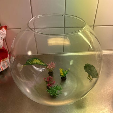 Hornbach 12L akvarium med guldfisk, allt tillbehör som man ser i bilder och mat.