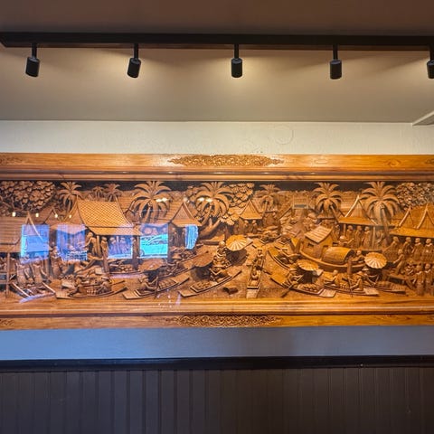 STOR Handskuren trärelief med elefantmotiv