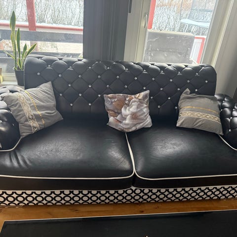 Soffgrupp i svart läder 3+3 sits 2st