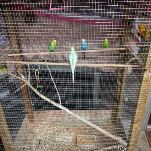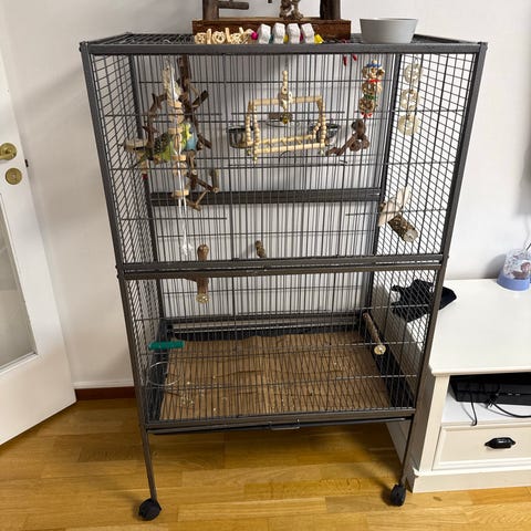 I köpet ingår en rymlig bur samt tillbehör såsom leksaker, sittpinnar och övrig utrustning – allt som behövs för att ge dem ett tryggt och stimulerande hem.