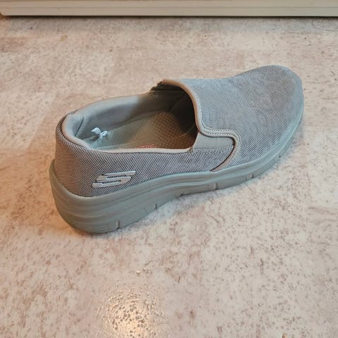Skechers Sneakers i storlek 38 med grå och rosa färg. Skorna har en ventilerande mesh- och textilöverdel samt en slitstark sula med greppmönster. Modellen är utrustad med Slip-Ins teknologi för enkel på- och avtagning.